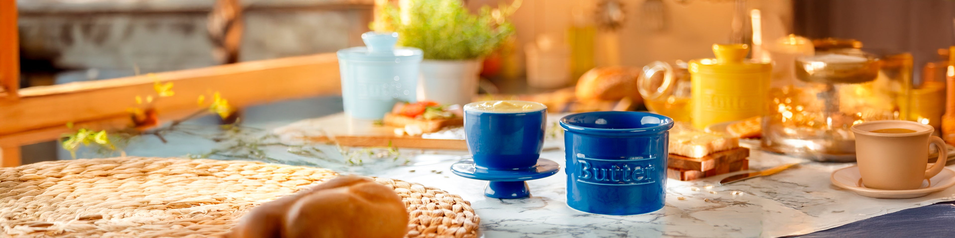 Beautiful Butter Crock for Counter with Water Line - Butter Keeper with Lid - Original French Butter Dish for Spreadable Butter - 100% Premium Ceramic - Keeps Butter Fresh and Creamy