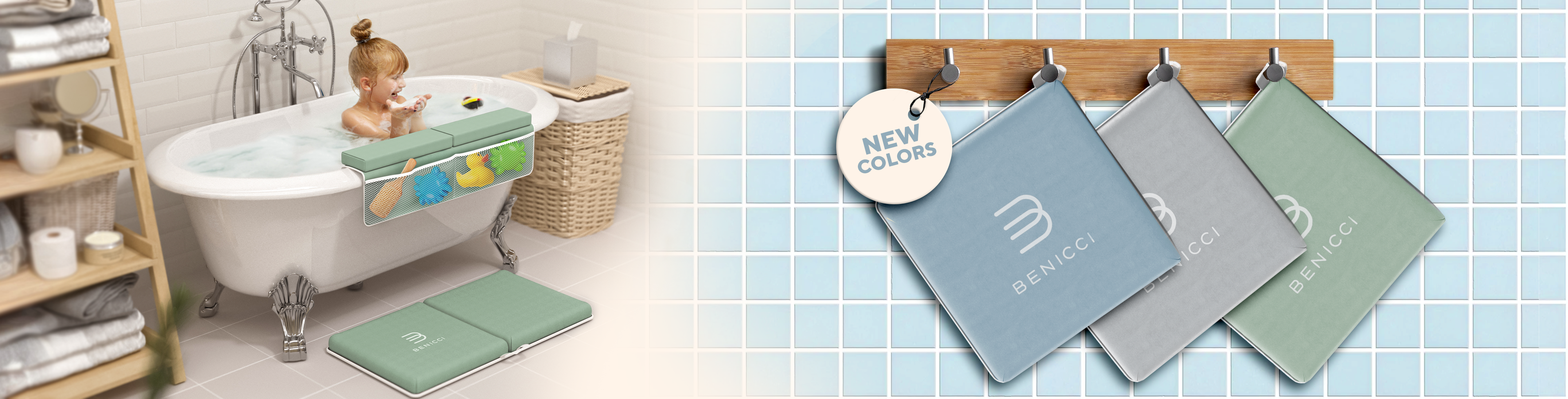 Comfortable Bath Kneeler and Elbow Kneeling Rest Pad for Baby Bathing Parents - Painless Foam Mat with Toy Organizer Pockets - Quick Drying, Foldable