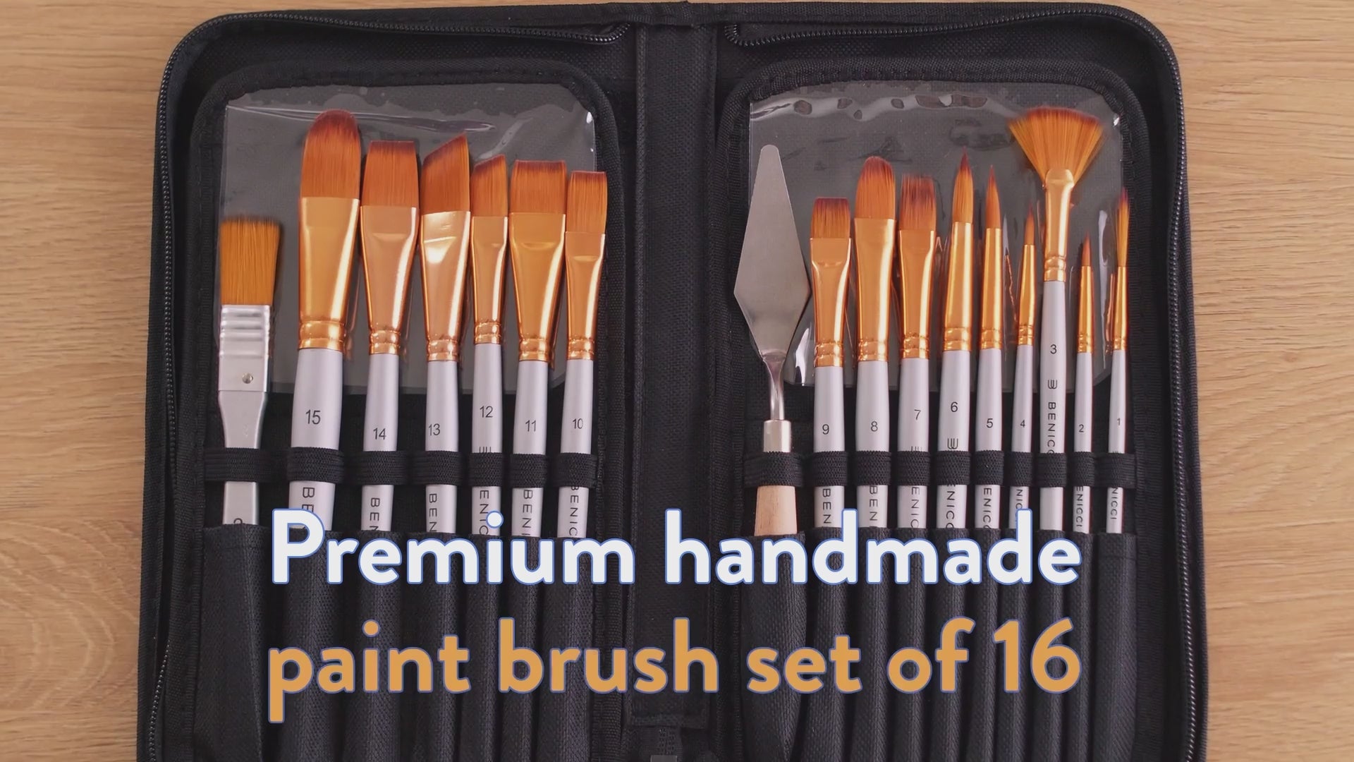 - Versatile Artistic Kit - Our ultimate set of 16 nylon brushes includes a perfect variety of sizes and shapes – flat, round, liner, filbert, glaze, angle, and fan brushes. It ensures the capture of every stroke, from detailed liner work to broad glazes. Unleash your creativity using Benicci premium quality paint brush set.