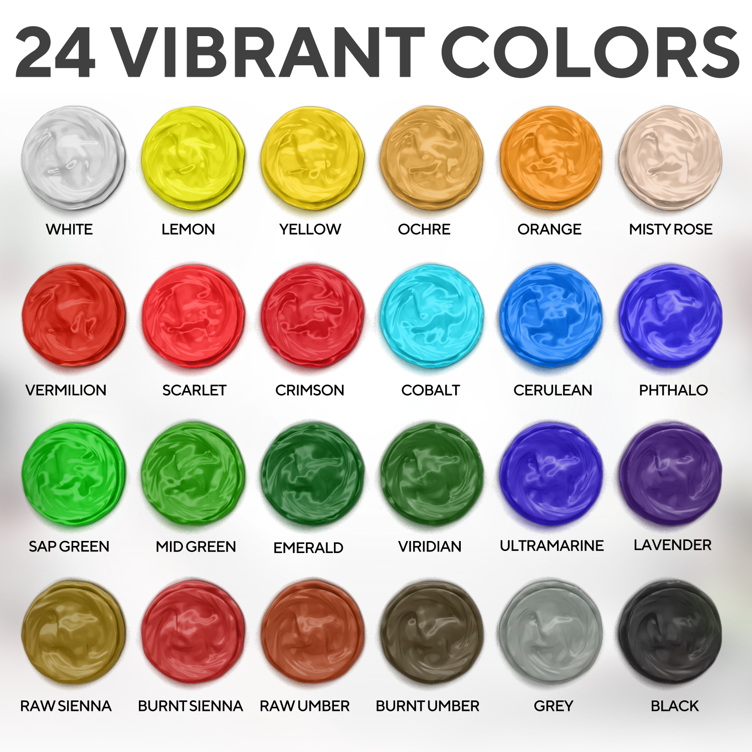 - Enhance Your Artistic Journey - From fine art to crafting and DIY projects, our Acrylic Premium Artist Paint Set of 24 equips you to tackle various creative endeavors. It's perfect for creating acrylic paintings of beaches, acrylic paintings of fall, and acrylic paintings of water. Explore the basics of acrylic painting and enjoy painting a sunset in acrylics with our versatile.